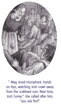 I had decided that the stories in this book would grow out of the daily chores that pioneer children had to do. Repetitive chores, however, can be very boring both in the execution and in the telling. So how to make my stories interesting? In all our lives, in even the most boring of weeks, things happen that stand out, that make us run into the house shouting “You’ll never guess who I saw at the shopping mall,” or …”what happened at recess today.” So as I researched I kept alert for moments in the lives of those long ago pioneers when something happy, funny, sad or scary made a day memorable. Then I built my stories around such moments as Sarah finding the first egg of the season or Willy standing up to a bully at school.